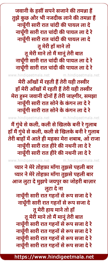 naachungi sari raat chandi ki payal la de