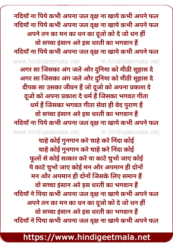 Lyrics of Nadiya Na Piye Kabhi Apna Jal - नदियाँ ना पिये कभी अपना जल