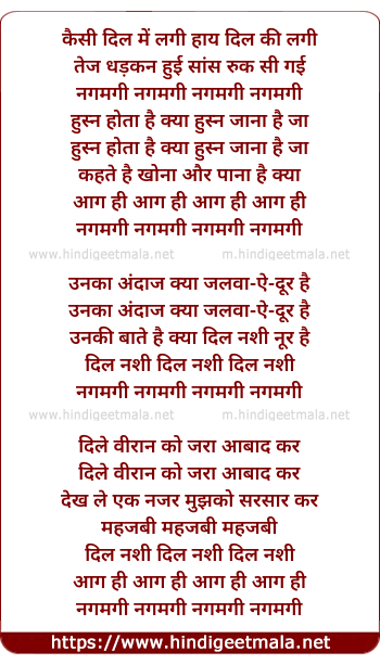 Lyrics of Nagmagee - कैसी दिल में लगी हाय दिल की लगी