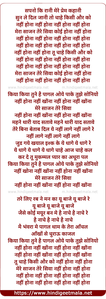 Lyrics of Nahee Hona Nahee Hona - नहीं होना नहीं होना
