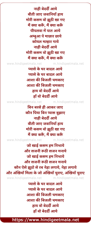 Lyrics of Nahi Bedardi Aaye - नाही बेदर्दी आये