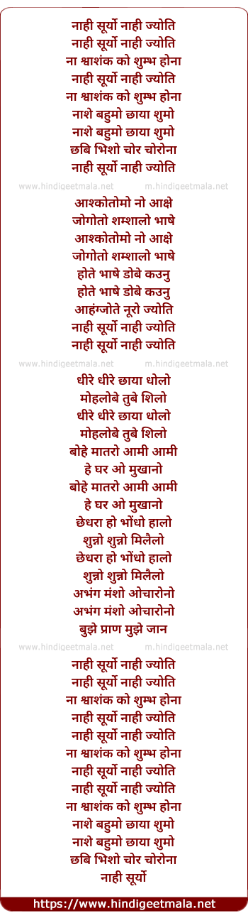 Lyrics of Naahi Suryo Nahi Jyoti - नाही सूर्यो नाही ज्योति