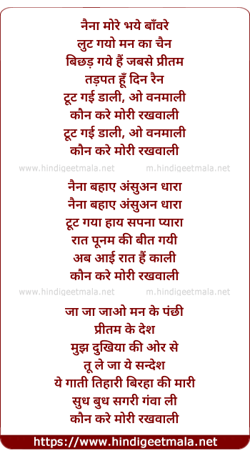 Lyrics of Naina More Bhaye Baanwre - नैना मोरे भये बाँवरे