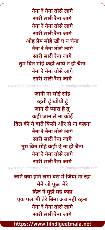 Lyrics of Naina Re Naina - नैना रे नैना तोसे लागे