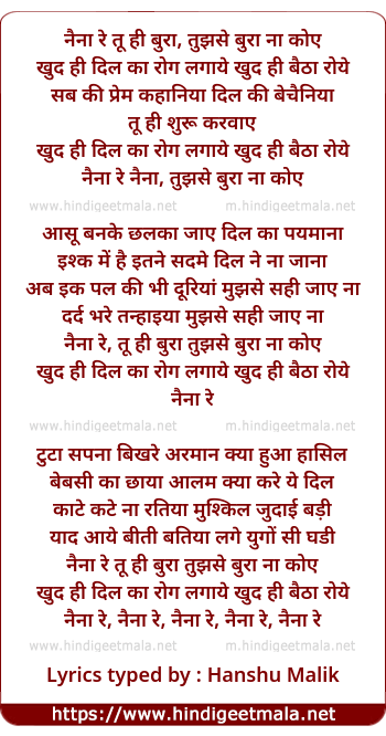 Lyrics of Naina Re (Remix) - नैना रे तू ही बुरा, तुझसे बुरा ना कोए