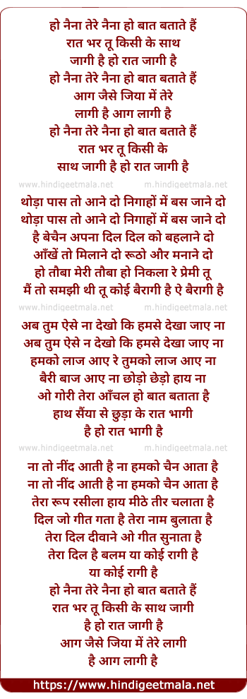 Lyrics of Naina Tere Naina Ho Bat Batate Hain - हो नैना तेरे नैना हो बात बताते हैं