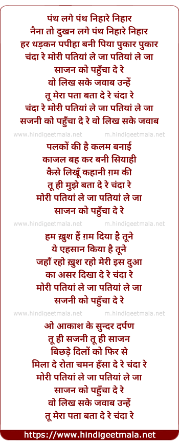 naina to dukhan lage panth nihare nihar