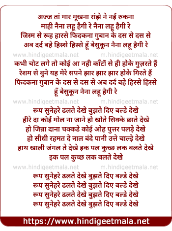 ab dard bahe hisse hisse hun besukun naina lahoo haigi re