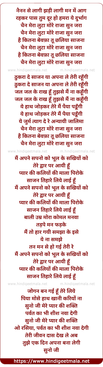 Lyrics of Nainan Se Lagi Jhadi Lagi Man Me Aag - नैनन से लागी झड़ी लागी मन में आग