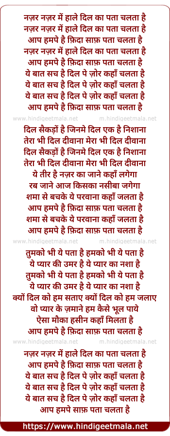 Lyrics of Nazar Nazar Me Hale Dil Ka Pata Chalta Hai - नज़र नज़र में हाले दिल का पता चलता है