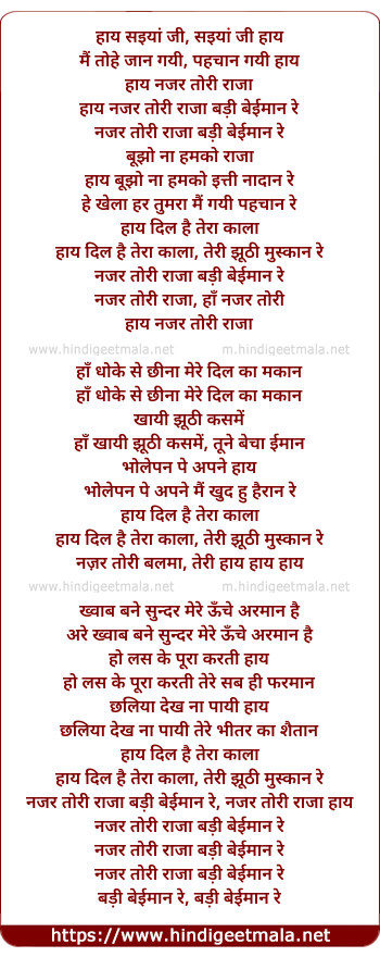 Lyrics of Najar Tori Raja - हाय सइयां जी, सइयां जी हाय