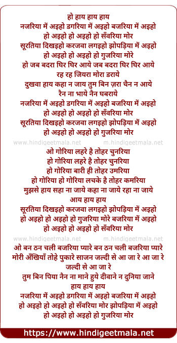 Lyrics of Najariyaa Men Aiho Dagariyaa Men Aiho - नजरिया में अइहो डगरिया में अइहो