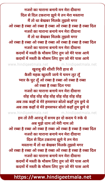 Lyrics of Najaro Ka Yarana Banaye Mann - नजरो का याराना बनाये मन
