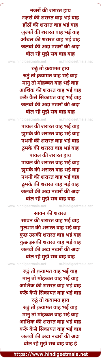 Lyrics of Najro Ki Sararat Waah Bhai Waah - नजरों की शरारत हाय