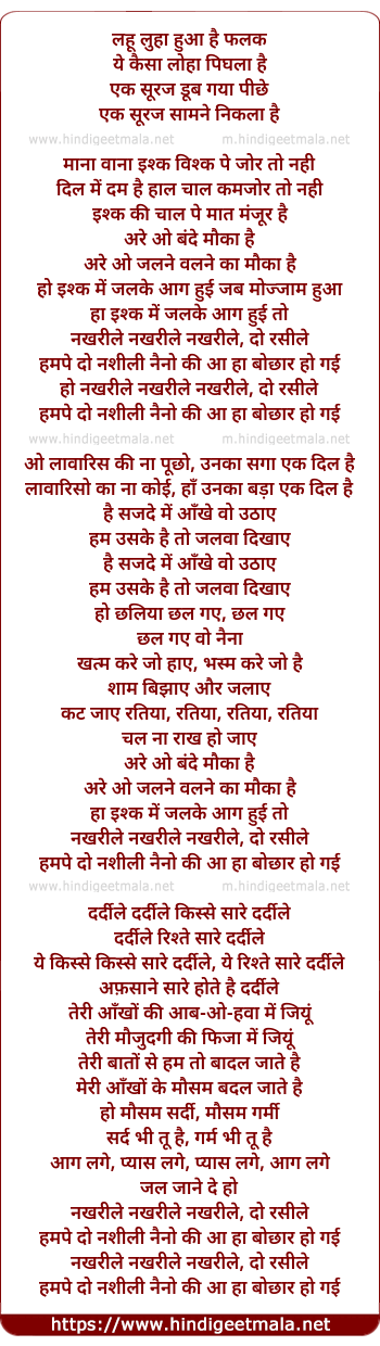 Lyrics of Nakhrile Nakhrile Nakhrile, Do Raseele - नखरीले नखरीले नखरीले, दो रसीले