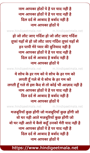 Lyrics of Nam Aapka Hoto Pe Hain - नाम आपका होठों पे है