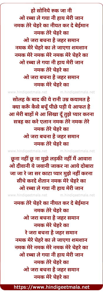 Lyrics of Namak Tere Chehre Ka - नमक तेरे चेहरे का