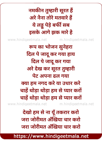 Lyrics of Namkeen Tumhari Surat Hai - नमकीन तुम्हारी सूरत हैं