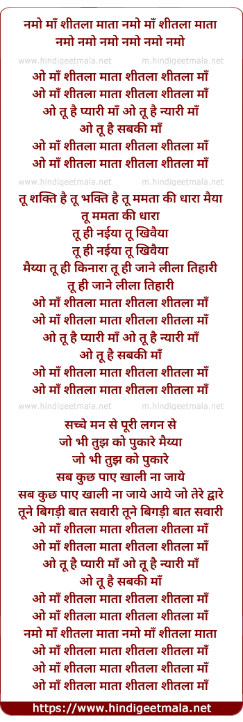 Lyrics of Namo Maa Sheetla - नमो माँ शीतला