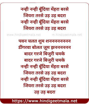 Lyrics of Nanhi Nanhi Boondiya Mehra Barse - नन्ही नन्ही बूँदिया मेंहरा बरसे