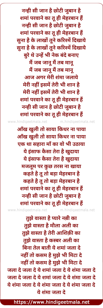 ye shamaan jala de ye shamaan jala de ye shamaan jala de