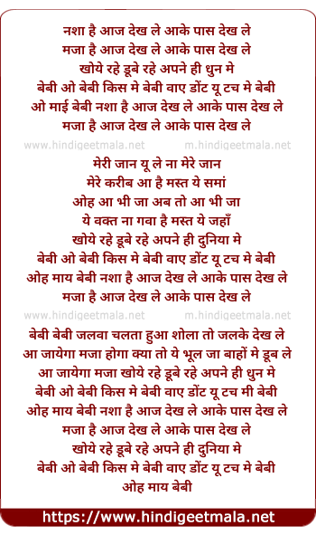 Lyrics of Nasha Hai Aaj Dekh Le, Aake Pas Dekh Le - नशा है आज देख ले, आके पास देख ले
