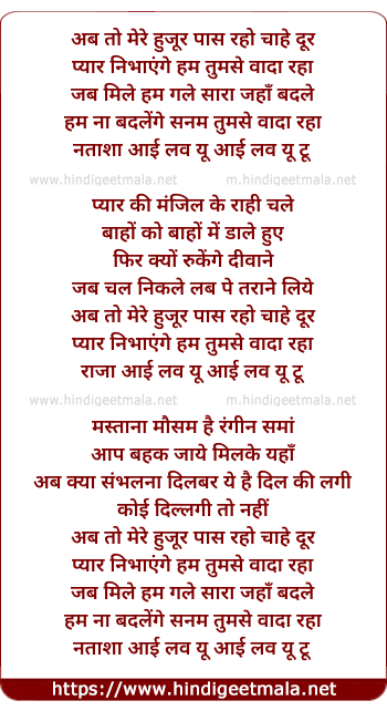 Lyrics of Natasha I Love You - नताशा आई लव यु