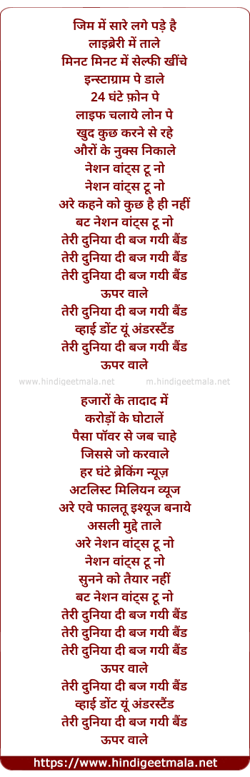 Poetic Translation - Lyrics of Nation Wants To Know - जिम में सारे लगे पड़े है