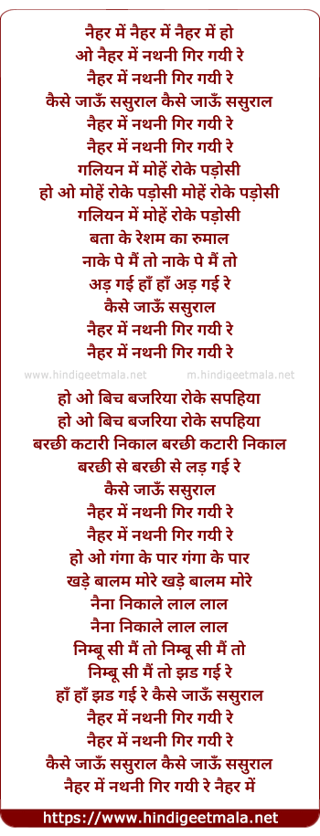 Lyrics of Nauhar Me Nathuni Gir Gayi - नैहर में नैहर में नैहर में हो