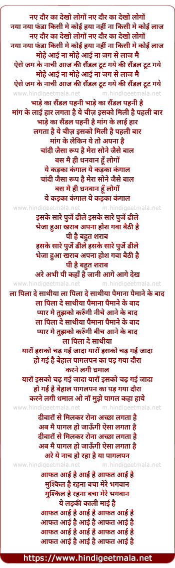 Lyrics of Naye Daur Ka Dekho Logo Naya Naya Fanda - नए दौर का देखो लोगों नया नया फंडा