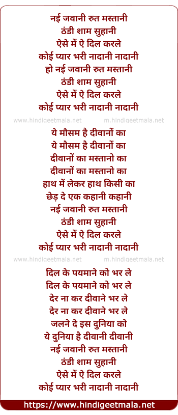 Lyrics of Nayi Jawani Rut Mastani - नई जवानी रुत मस्तानी