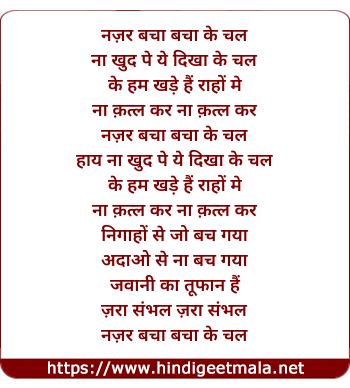 Lyrics of Nazar Bacha Bacha Ke Chal - नज़र बचा बचा के चल