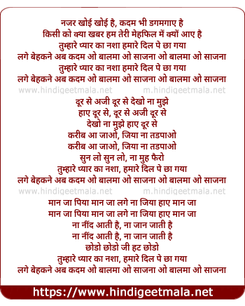 Lyrics of Nazar Bhi Khoyi Khoyi Hai Kadam Bhi Dagmagaye Hai - नजर भी खोई खोई है कदम भी डगमगाये है