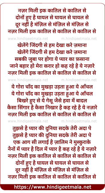 Lyrics of Nazar Mili Hai Ek Katil Se - नज़र मिली है इक कातिल से