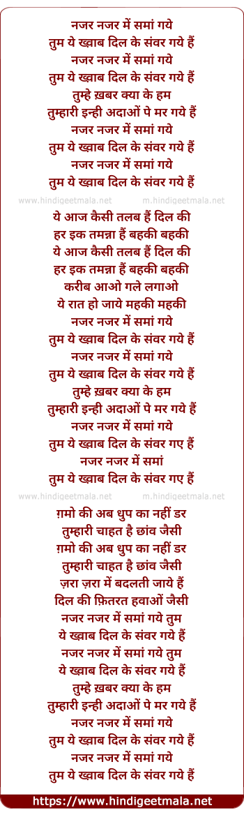 Lyrics of Nazar Nazar - नजर नजर में समां गये