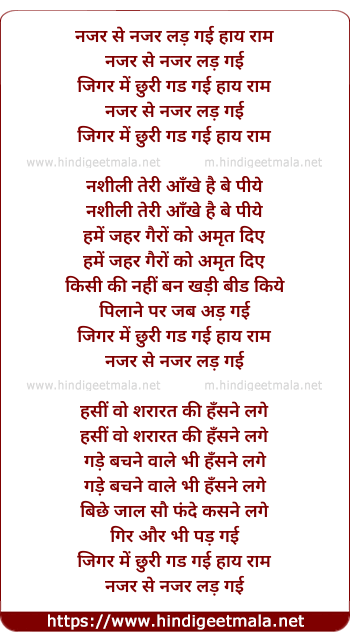 Lyrics of Nazar Se Nazar Lad Gayi - नजर से नजर लड़ गई