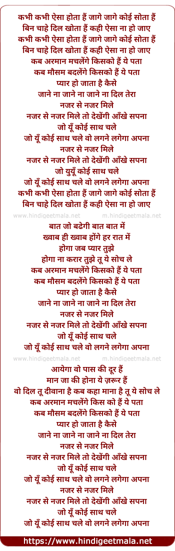 Lyrics of Nazar Se Nazar Mile - नजर से नजर मिले