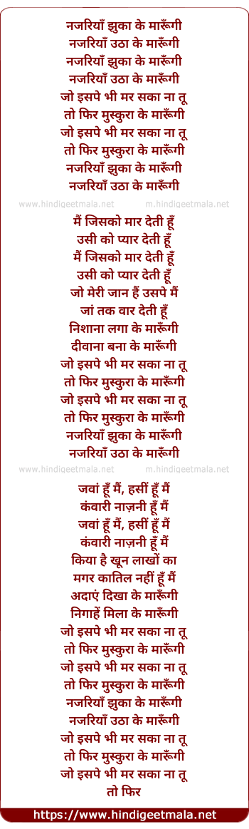 Lyrics of Nazariya Jhukha Ke Marungi - नजरियाँ झुका के मारूँगी
