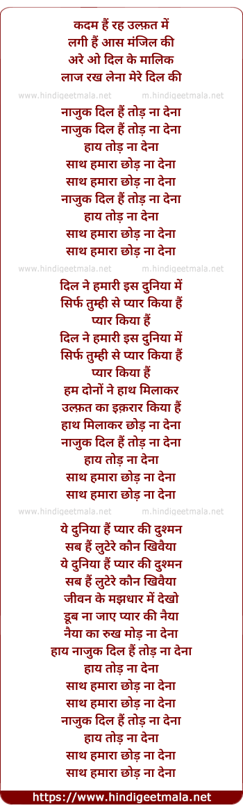 Lyrics of Nazuk Dil Hai Tod Na Dena - नाजुक दिल हैं तोड़ ना देना