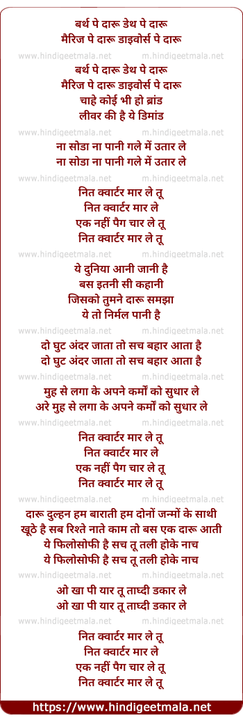 jhoothe hai sab rishte nate kaam to bs ek daaru aati