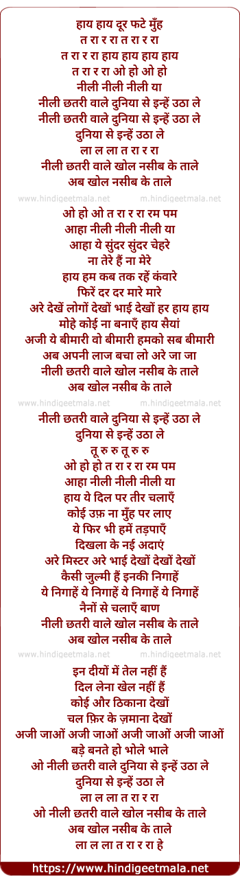 Lyrics of Neeli Chhatri Wale - नीली छतरी वाले