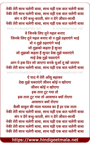 Lyrics of Neki Teri Saath Chalegi Baabaa - नेकी तेरी साथ चलेगी बाबा