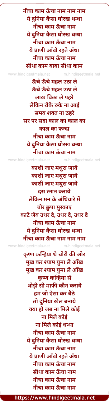 Lyrics of Nicha Kaam Uncha Naam - नीचा काम ऊँचा नाम