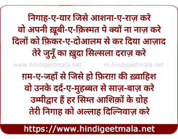 Lyrics of Nigaah E Yaar Jise Aashanaa E Raaz Kare - निगाह-ए-यार जिसे आशना-ए-राज़ करे