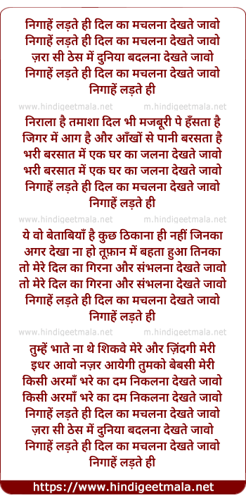 Nigahe Ladate Hee Dil Kaa Machalana Dekhate Javo - निगाहें लड़ते ही दिल का मचलना देखते जावो