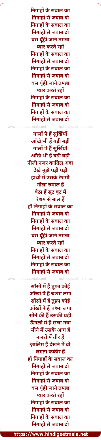Lyrics of Nigaho Ke Sawal Ka Nigaho Se - निगाहों के सवाल का निगाहों से