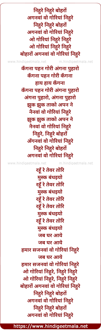 Lyrics of Nihure Nihure Boharo - निहुरे निहुरे बोहरों