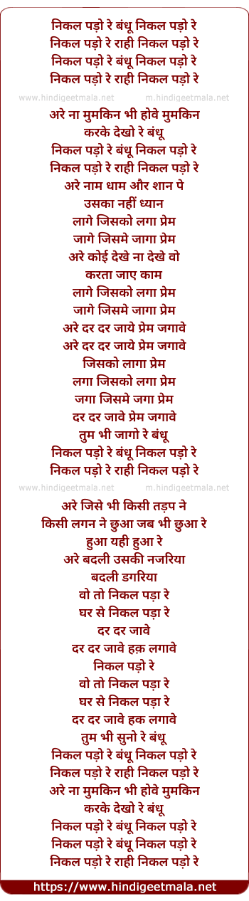 Lyrics of Nikal Pado Re Bandhu Nikal Pado Re - निकल पड़ो रे बंधू निकल पड़ो रे