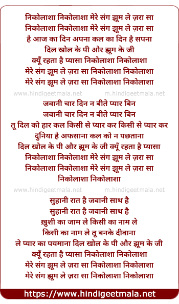 Lyrics of Nikolasa Mere Sanam Jhum Le Zara Sa - निकोलाशा मेरे संग झूम ले ज़रा सा