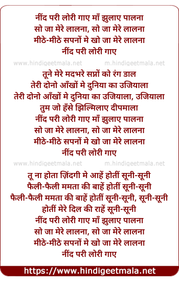 Lyrics of Nind Paree Loree Gaye - नींद परी लोरी गाए